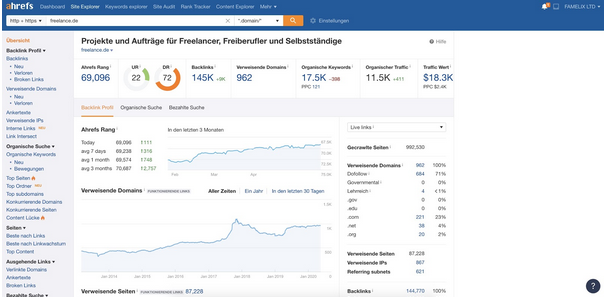 Als Online-Texter müssen Sie all Ihre Texte auf SEO-Kriterien prüfen, bevor Sie diese veröffentlichen. Mit dem SEO-Tool Ahrefs optimieren Sie Ihren Content und machen ihn ready, um online gefunden zu werden. Vor Allem eignet sich Ahrefs um das Backlink-Profil von Mitbewerbern zu analysieren. So lässt sich Link Building aufs nächste Level heben – egal ob für Broken Link Building, organischen Linkaufbau oder andere Möglichkeiten.