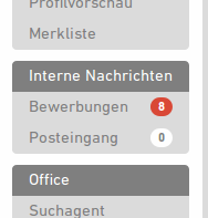 In Ihrer Übersicht werden Sie – wie im übrigen auf der gesamten Website – über wichtige Änderungen immer am Anfang der Seite hingewiesen. Hinweise auf neue Nachrichten oder Bewerbungskommunikation finden Sie hier ebenso wie Hinweise auf neue Funktionen, Upgrades oder Warnhinweise.