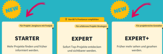 freelance.de bietet 3 Premium-Mitgliedschaftsoptionen an: